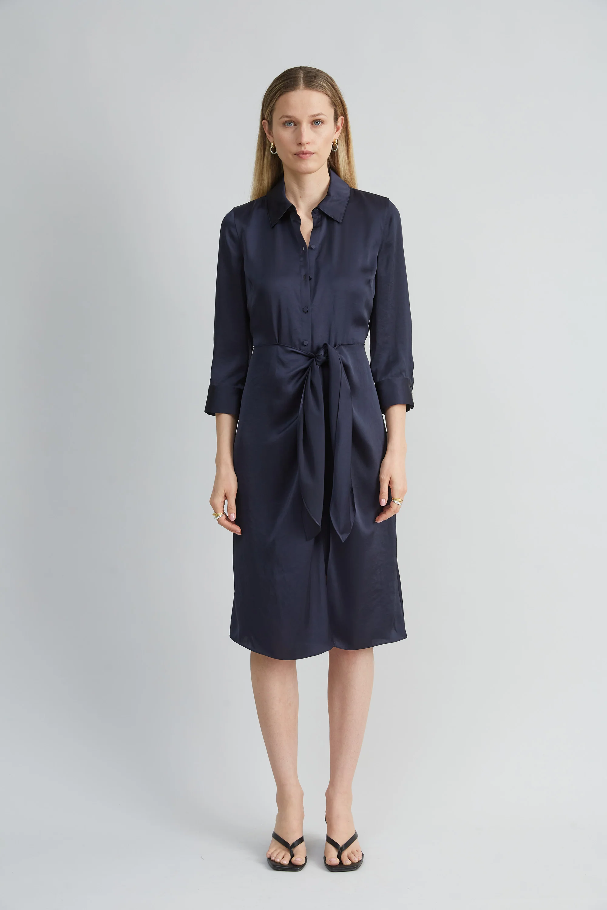 Satin Tie Shirt Dress