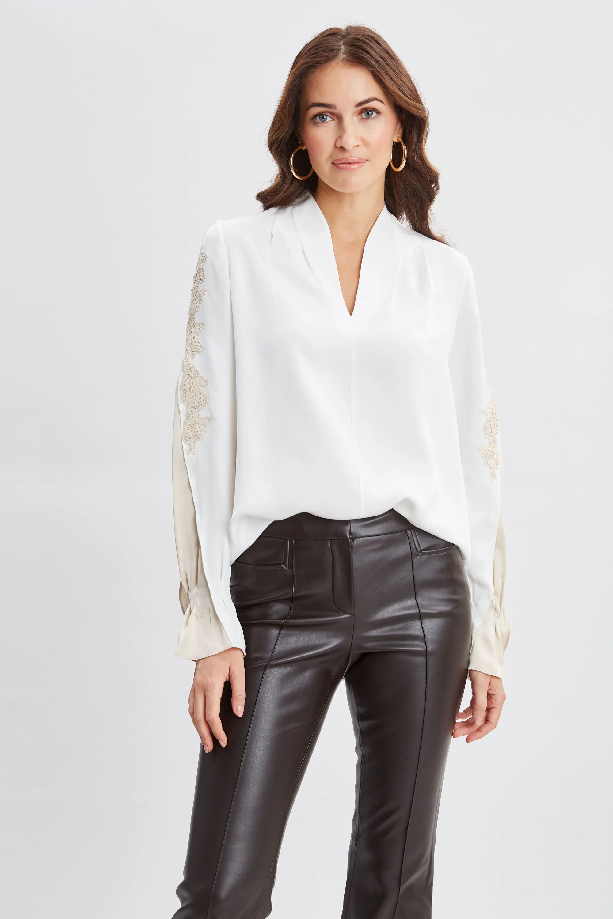 Lace Sleeve Silk Shirt