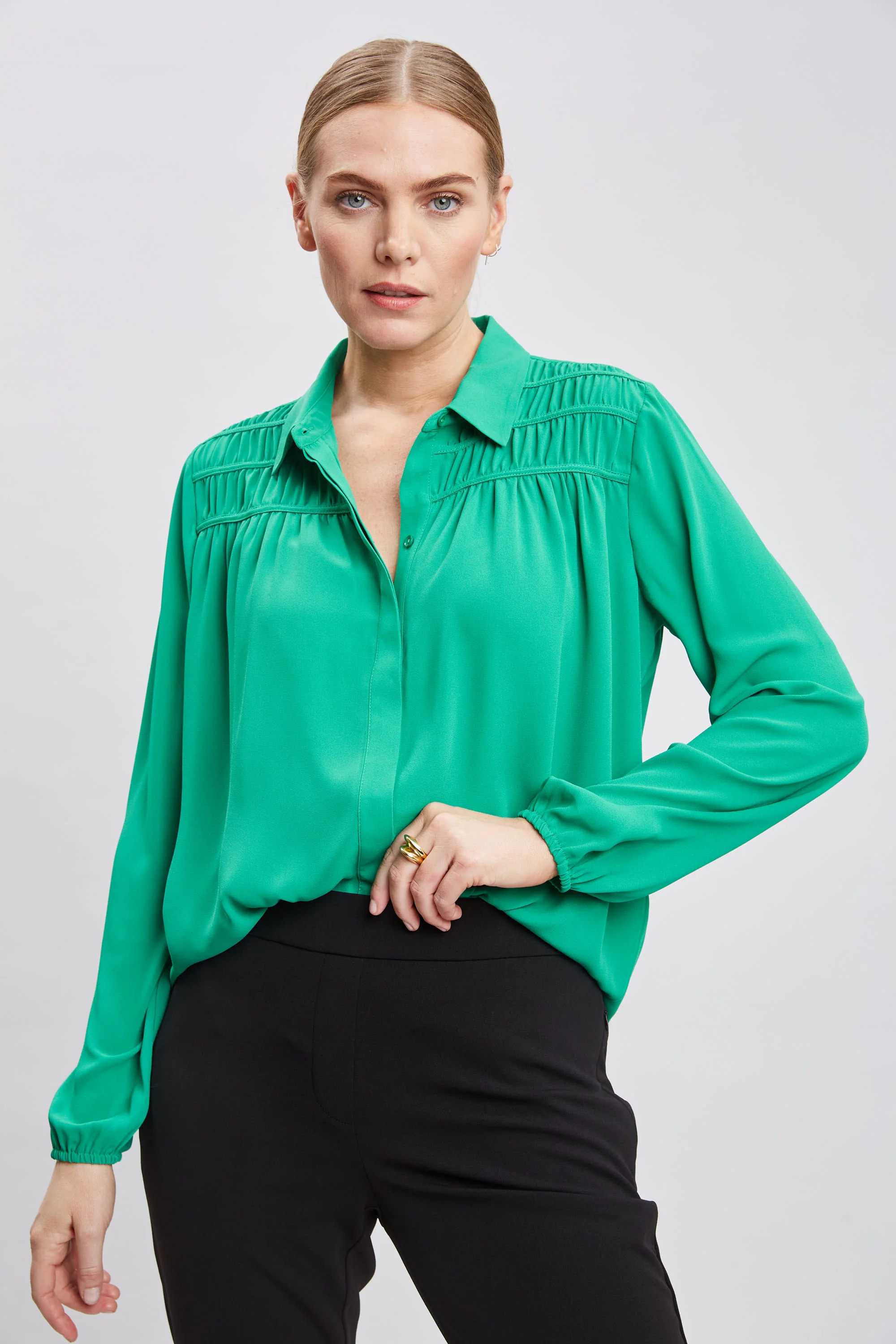 Blouson Satin Tie Shirt