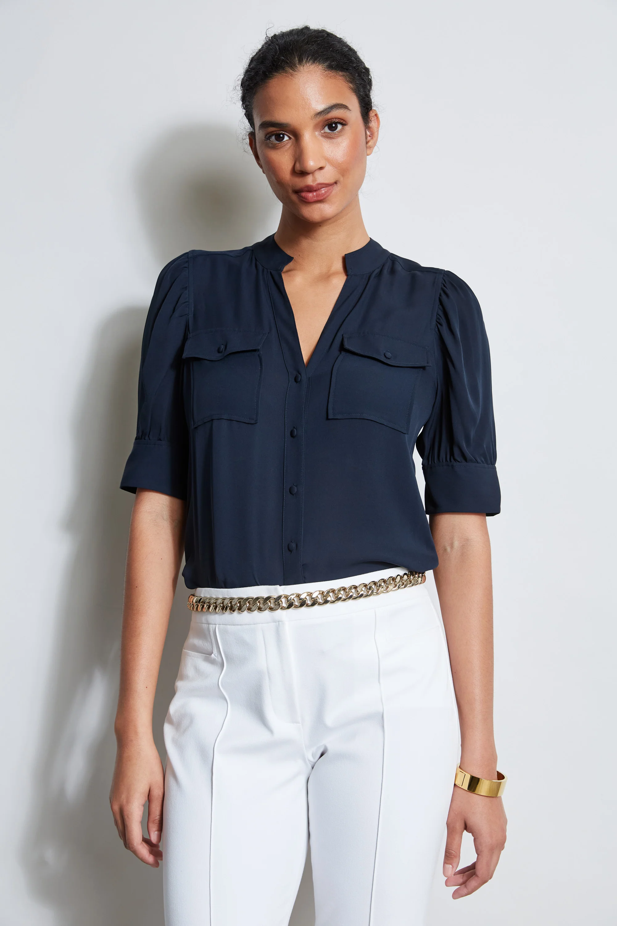 Crinkle Chiffon Safari Blouson Shirt
