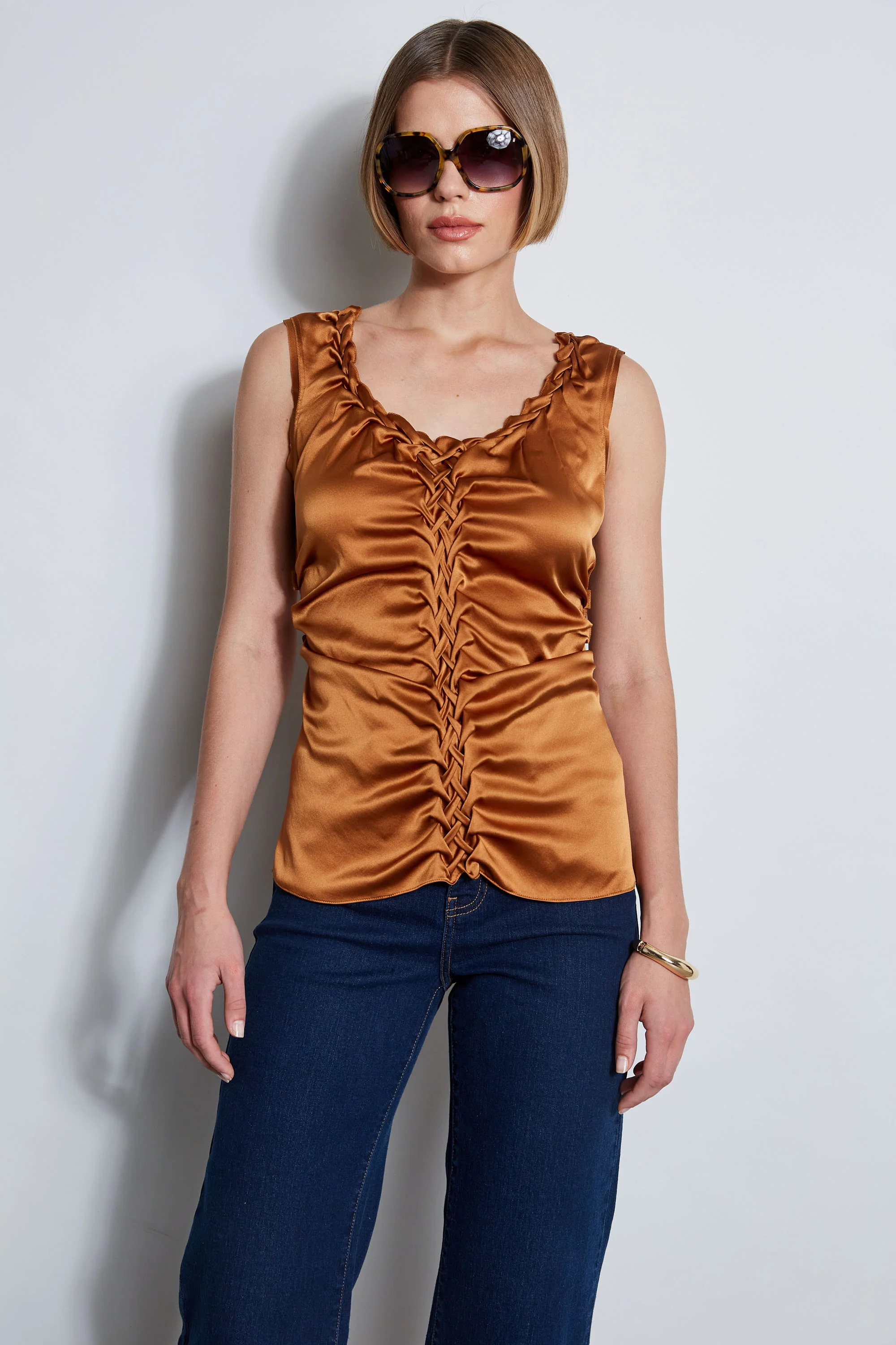 Silk Satin Braid Ruched Top