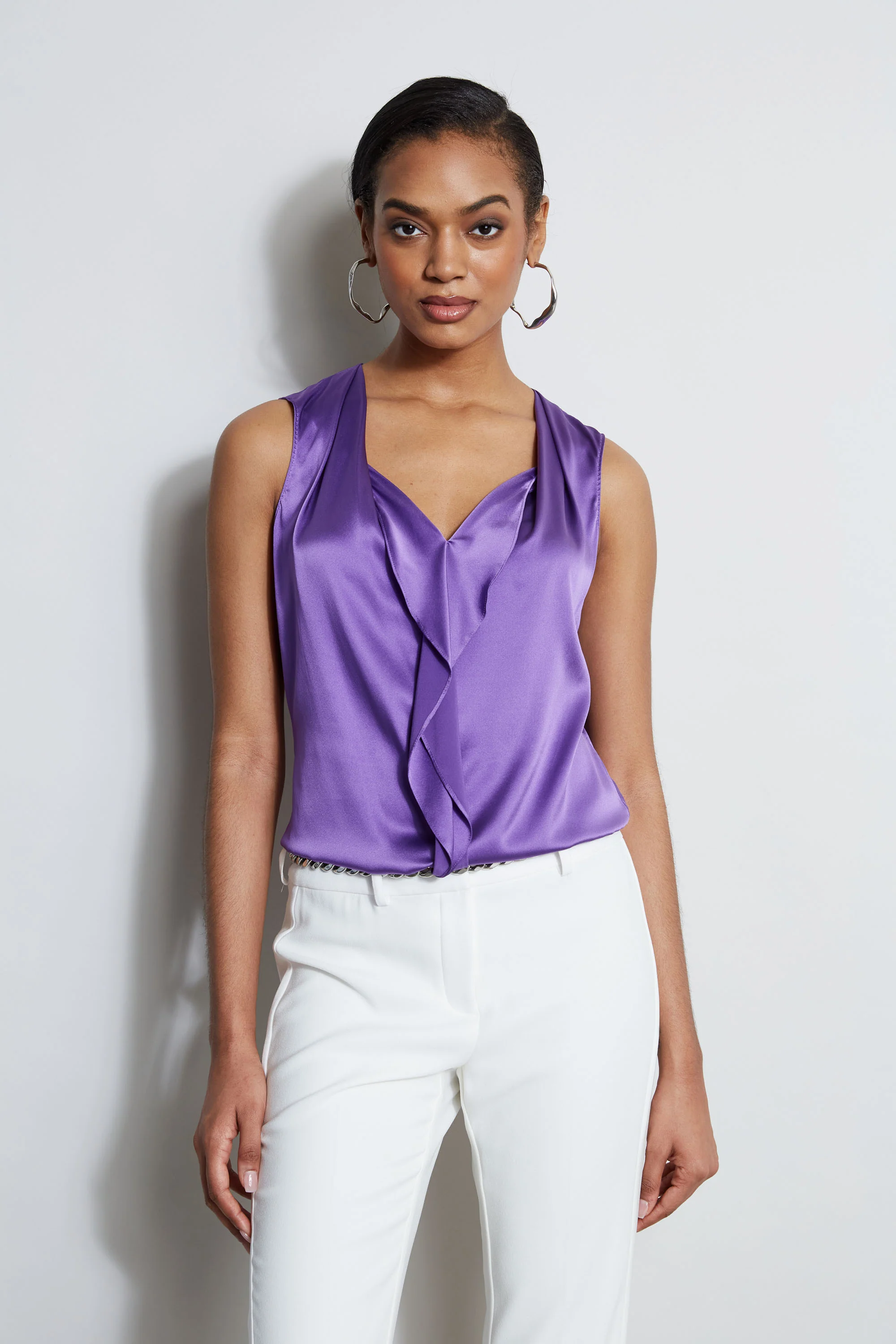 Silk Satin Sleeveless Cascade Shirt