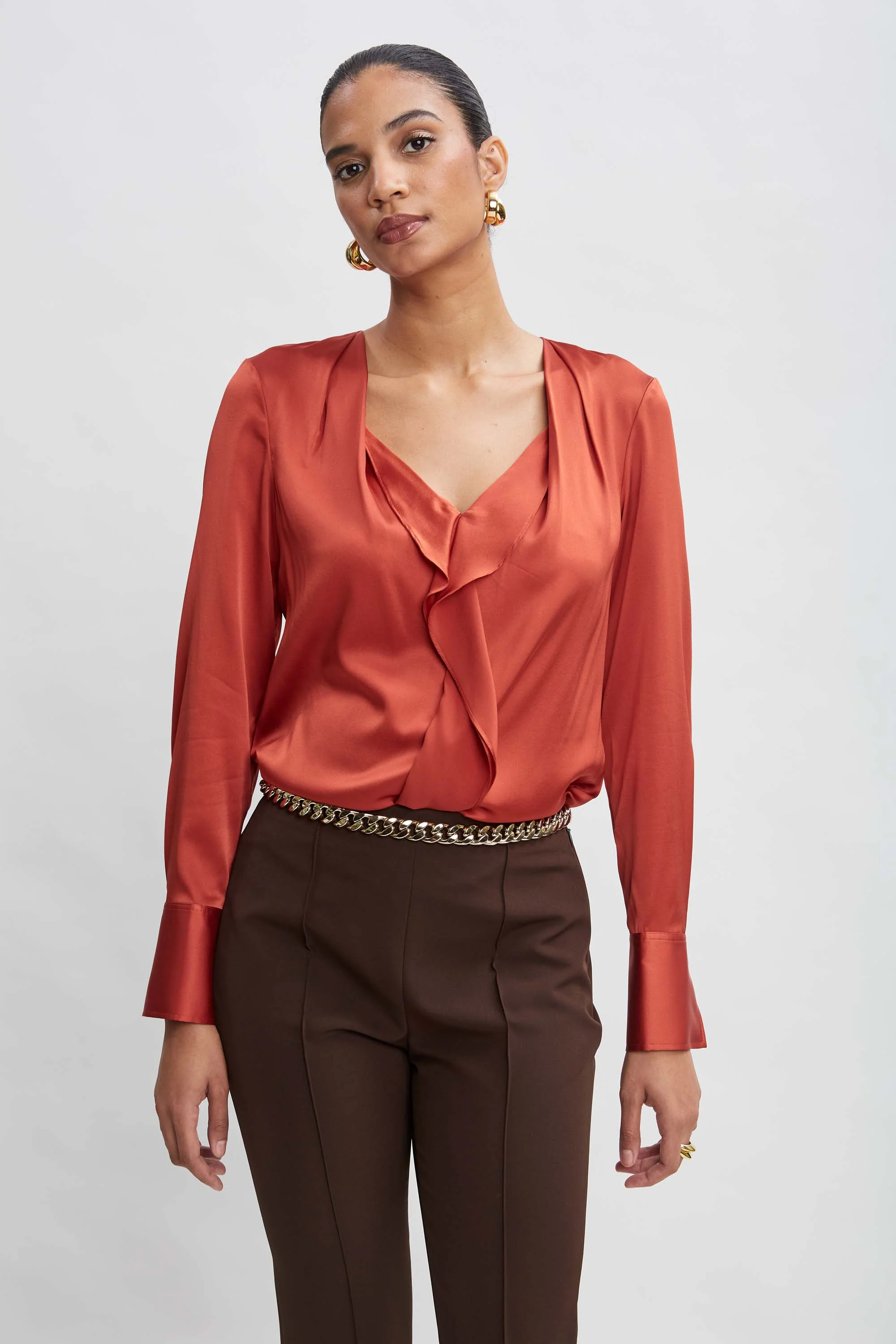 Silk Satin Contour Ruffle Shirt