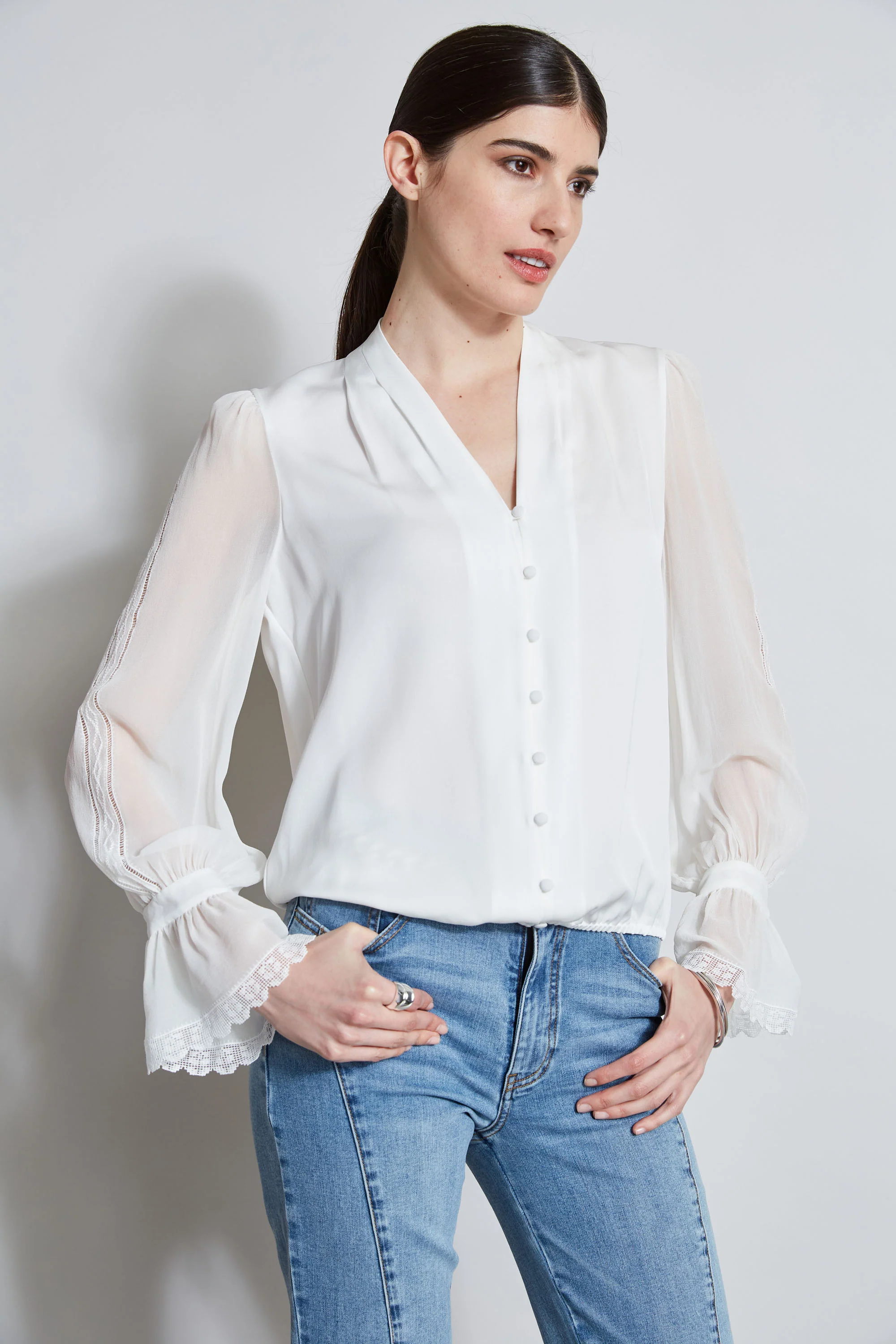 Silk Satin Flutter Sleeve Shirt