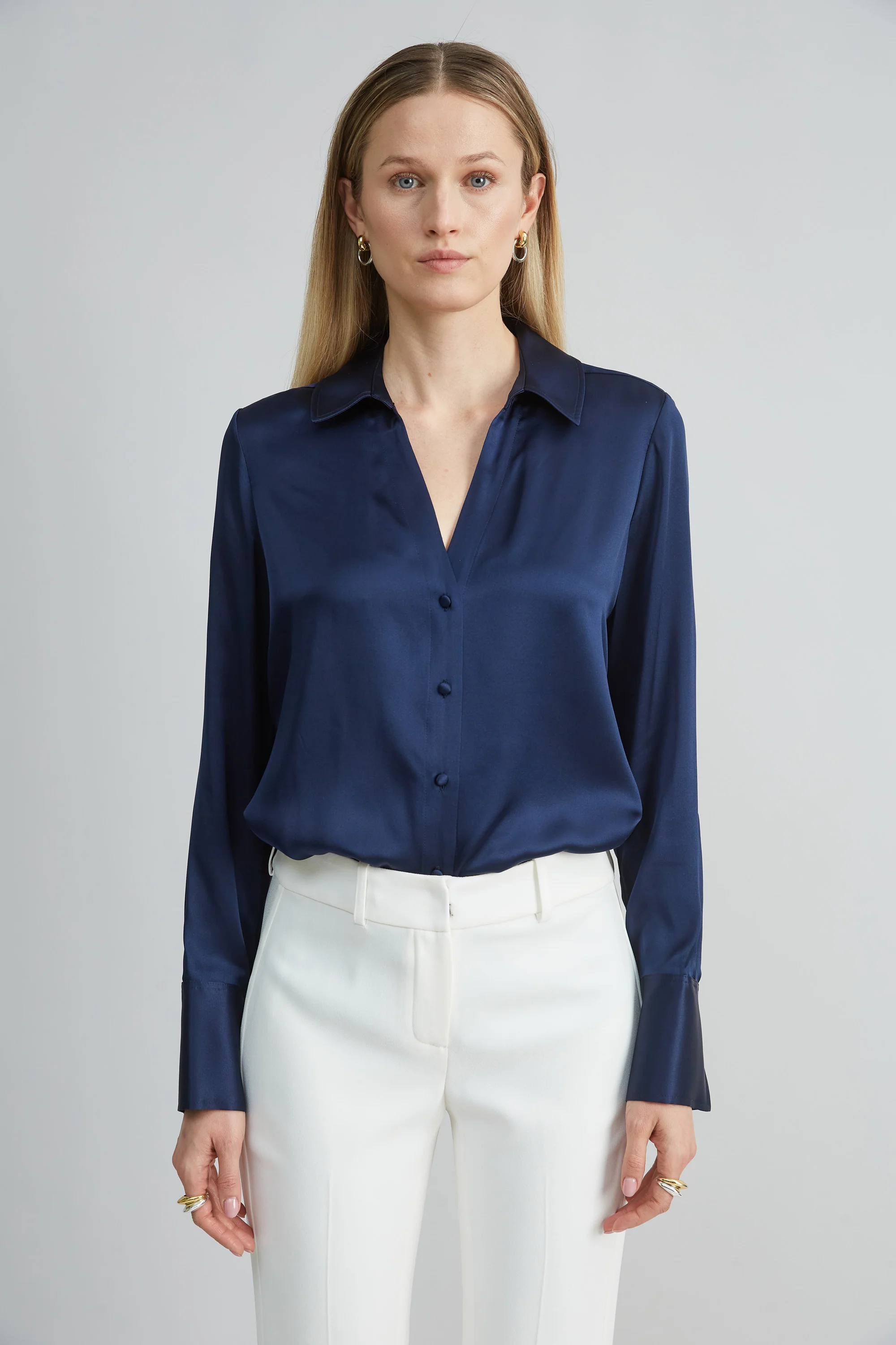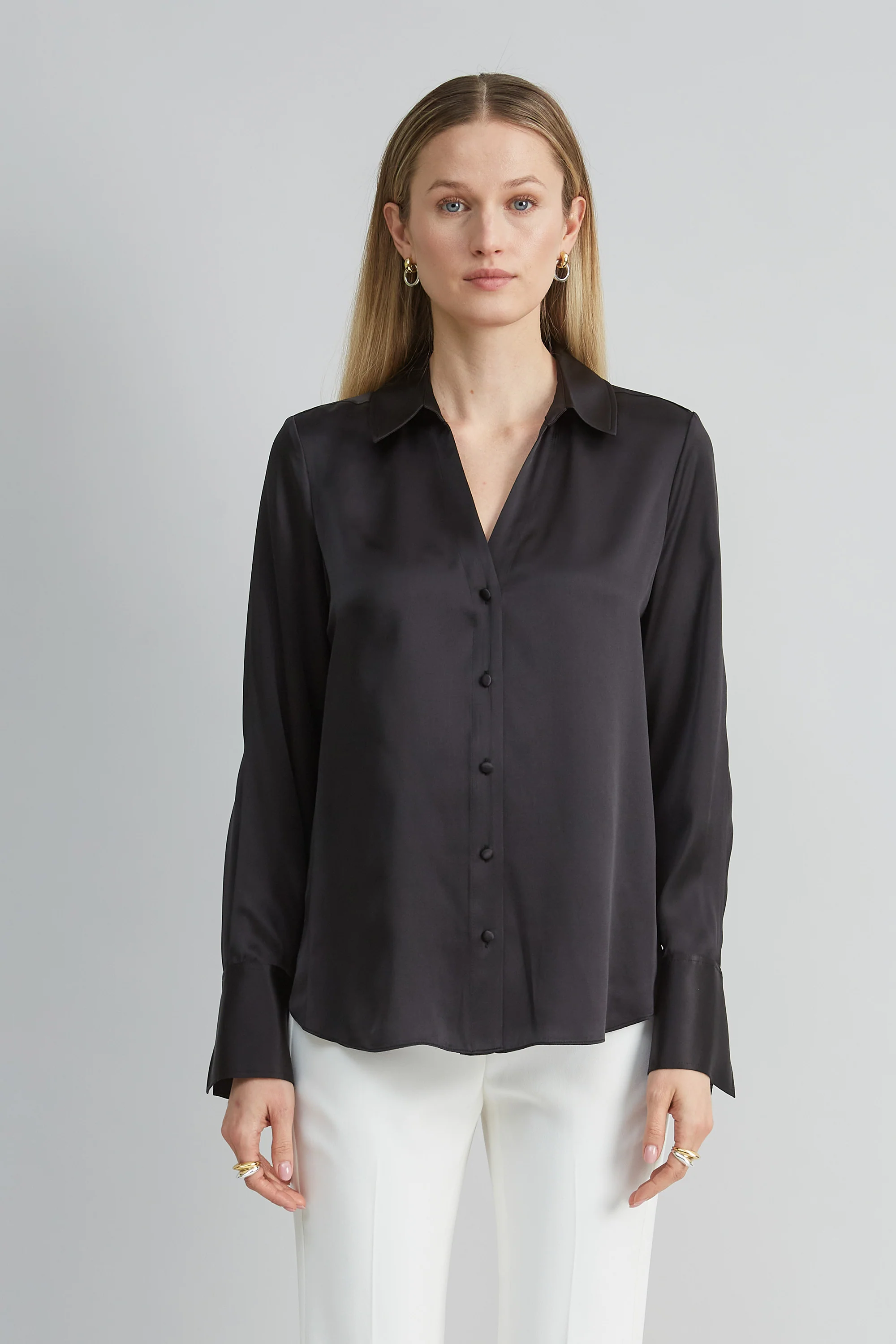 Silk Satin Button Down Shirt