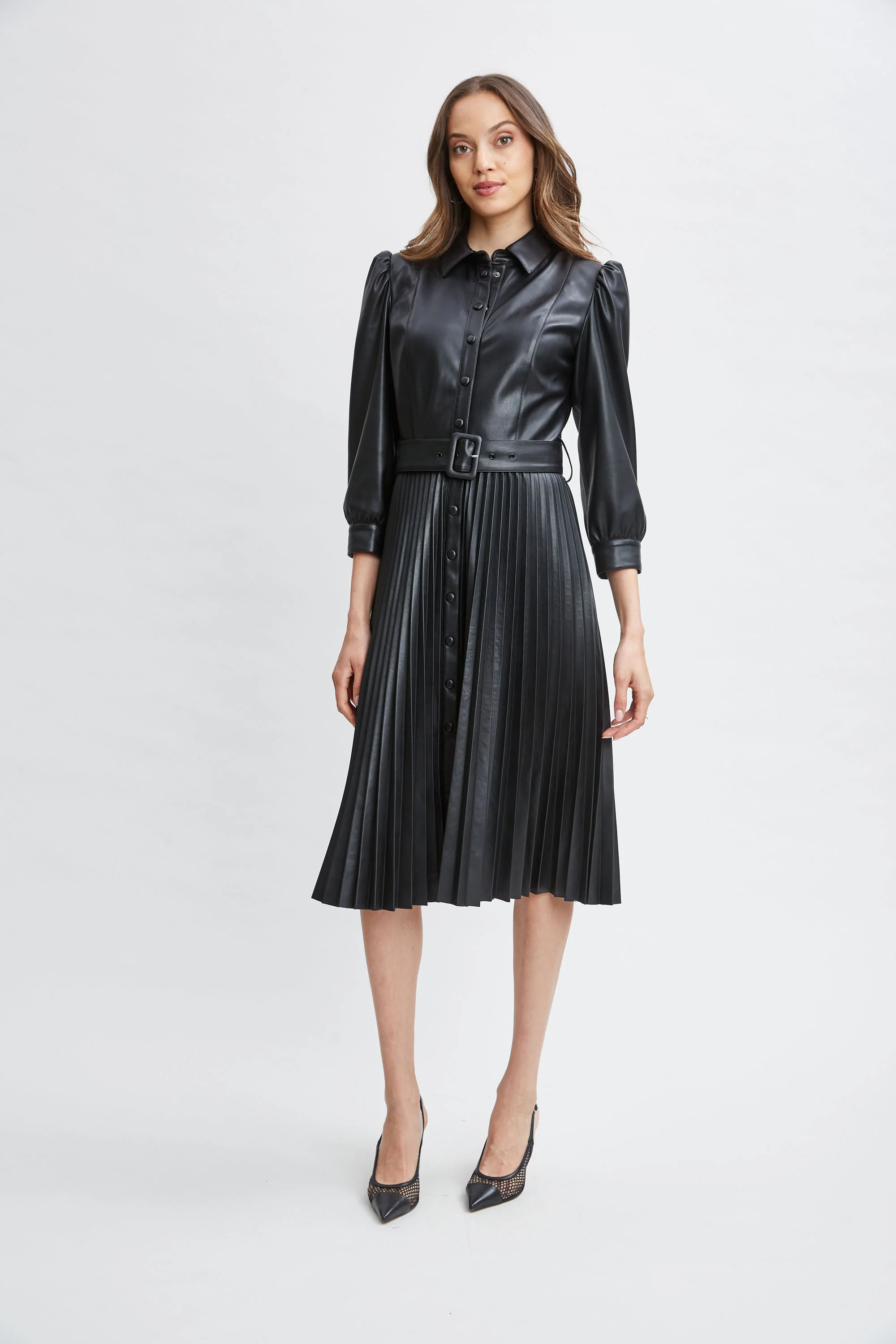 T-Tahari Vegan Leather Pleated Dress