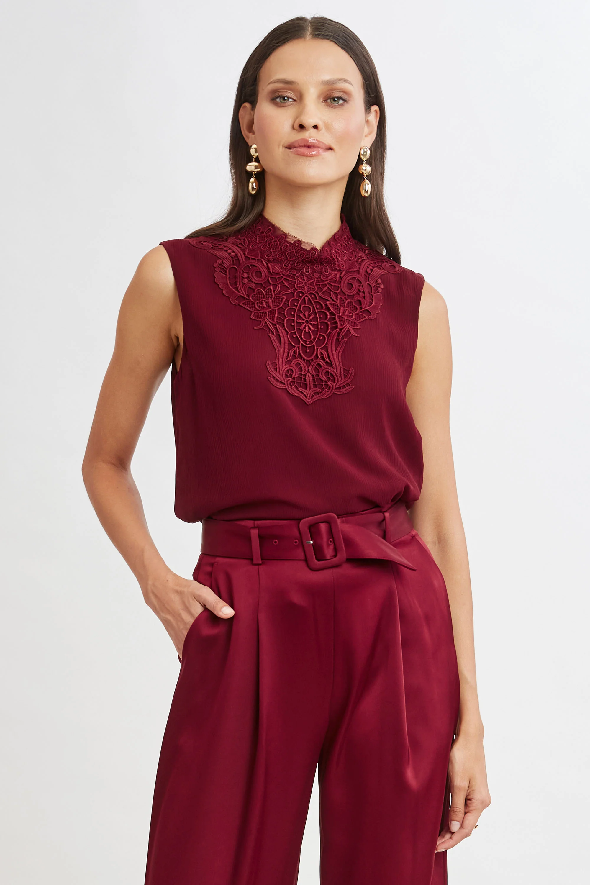 Satin Crystal Cowl Top