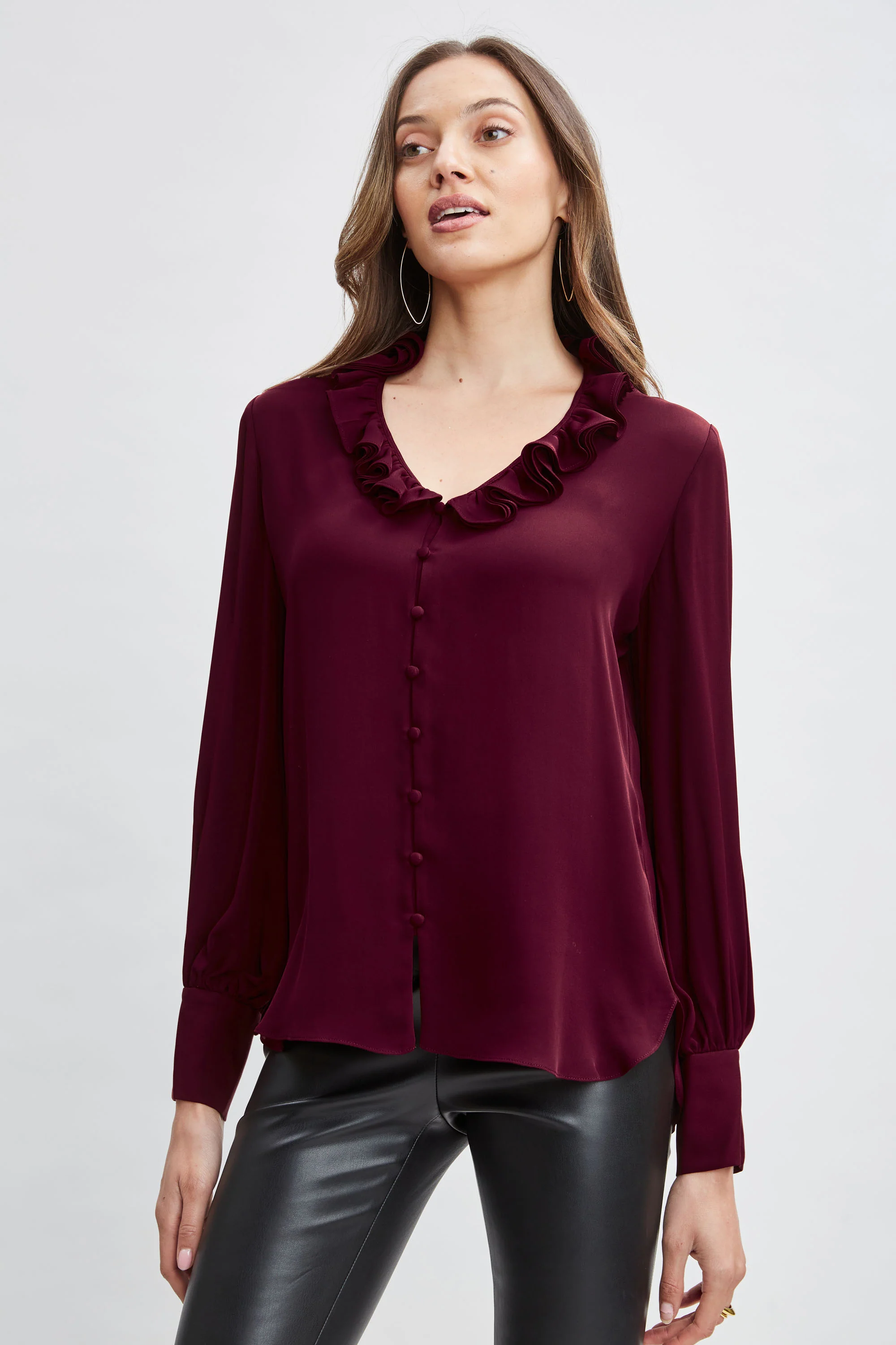 Silk Satin Contour Ruffle Shirt